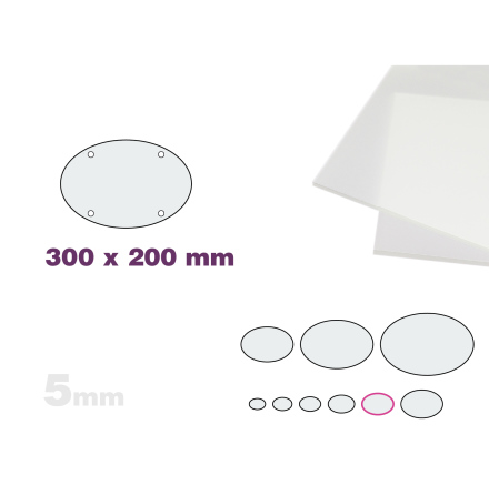 Skyltämne tillverkad i 5mm frostad akryl, GS,300x200mm Oval. Kantpolerad akryl. Går att få hålad, ohålad, a...Art nr. Am5o-300200-13