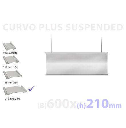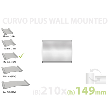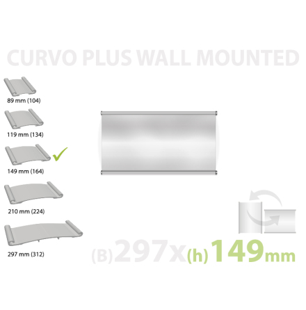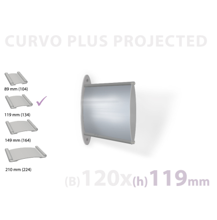 En Curvo skylt består av en svagt konvex aluminiumprofil, samt en anti-reflekterande frontplast och slutligen ett instick med skyltbudskapet som till exempel kan vara printat på vanligt papper.